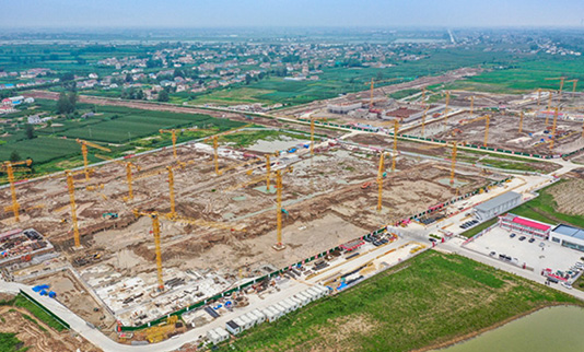 9月7日上午,在濱海港港城保障房項目建設(shè)現(xiàn)場,塔吊林立,一派繁忙景象。2021-09-10 -